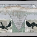 Grijze plank met groene onderlaag. Kraswerk met els. Vogels: lijm en verf.