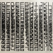 In dertien vertikale vakjes veranderen de letters A t/m M (kapitalen) in de. cijfers 1 t/m 13 door lijnstukjes toe te voegen en weer weg te laten. Gekalligrafeerd met redispen / schrijfinkt op papier.