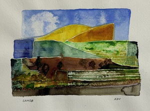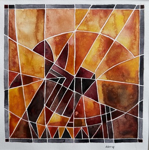 2017Waterverf op aquarelpapier. Schets met potlood. Uitwerking met penselen. Geabstraheerde vorm.
