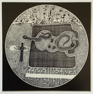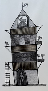 Pentekening en Oost-indische inkt, soms gecombineerd met waterverf, kleurpotlood, lijm etc.