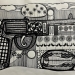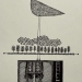Pentekening met Oost-Indische inkt op ivoorkarton. Kleuren in waterverf met penseel en eigen druktechniek.